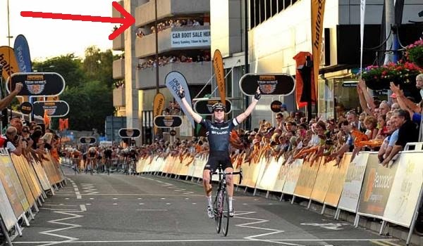 The annotation is mine, check out the crowds stealing every vantage point possible, it’s a sight to make the organisers, riders and sponsors proud. One way to start a racing scene is to use races like this, it brings a more exciting form right to the public, as opposed to a more normal road race which flashes by the countryside, often to the unique entertainment of farm animals. Here’s hoping the growing popularity of the sport in the UK can gain in momentum.