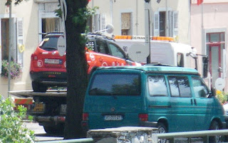 It doesn’t rain, it pours: Armstrong’s crashed, Kloeden’s cracked and now it seems even the Radioshack team vehicles have broken down (see picture).