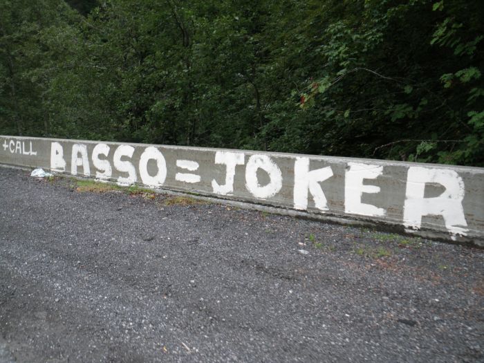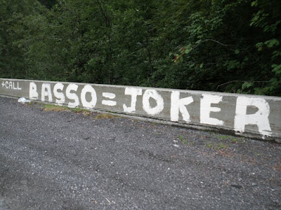 I’ve been waiting to use the above photo for some time. Sent in by a reader some weeks ago, it’s graffiti from last summer’s Tour de France. So when I saw some headlines about Basso aiming to win the Tour de France, I thought the time had come. He had to be joking, right?